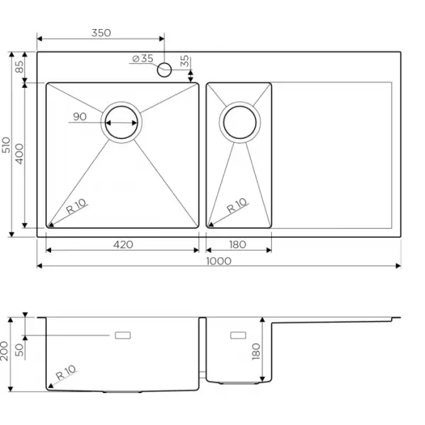 - Увеличенная глубина чаши - Оригинальная чаша мойки отличается не только привлекательным внешним видом, но и максимальным удобством: увеличенная глубина чаши позволяет избежать разбрызгивание воды за пределы мойки.
