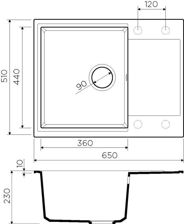 Купить Мойка Daisen 65-BL Artgranit/черный Omoikiri 4993684 артикул: 177491 в интернет-магазине ESMAG - Екатеринбург.