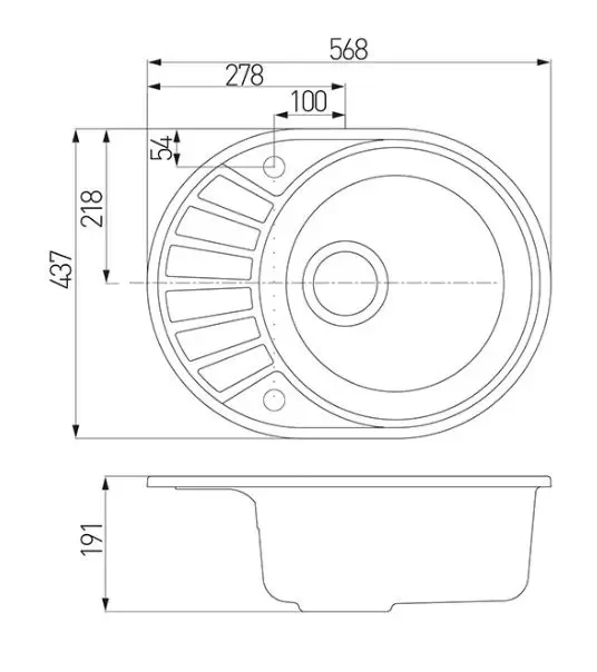 - Размеры раковины (ШхВxГ): 568х437х191 мм