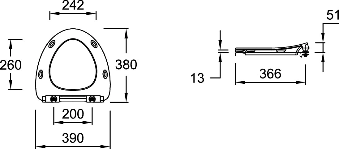 - Тонкое сиденье компакт, термодюропласт, плавное опускание с функцией быстрого снятия.