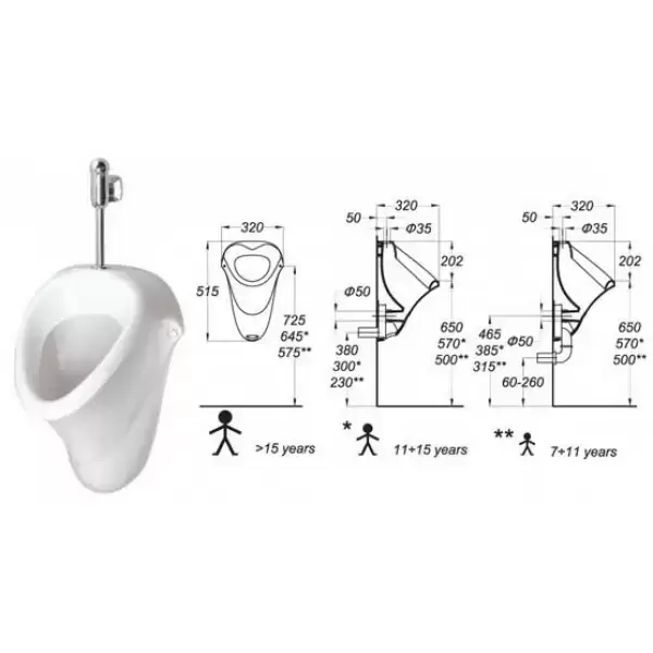 Купить Писсуар настенный Сева Микс внешний ввод воды W390061 артикул: 10735 в интернет-магазине ESMAG - Екатеринбург.