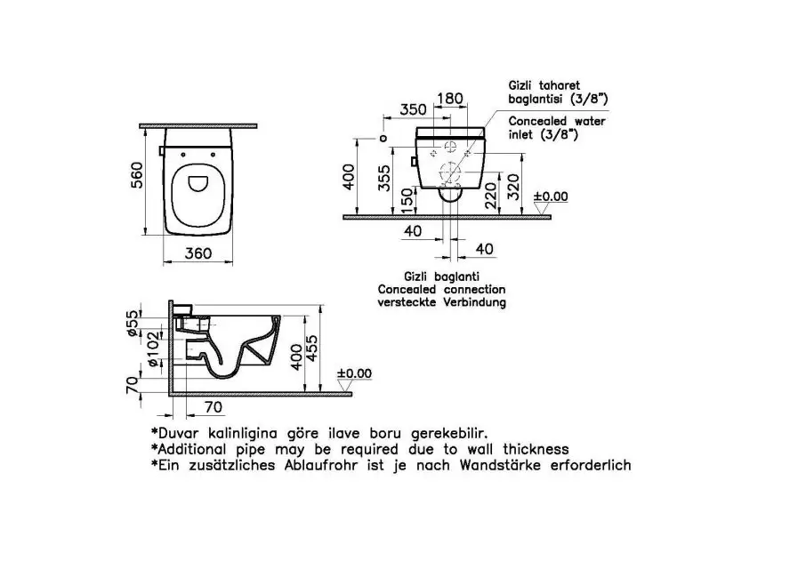 Подвесной унитаз METROPOLE 56 см с функциями VitrAflush и VitrAfresh 7672B003-1687