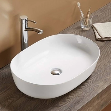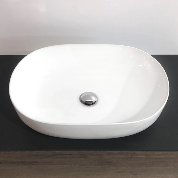 Назначение: овальный белый глянцевый мебельный умывальник для установки на тумбу или столешницу.