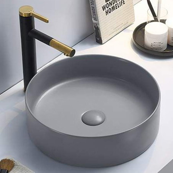Круглая накладная мебельная раковина-чаша Comforty 9110MH светло-серая матовая для установки на тумбу или столешницу.