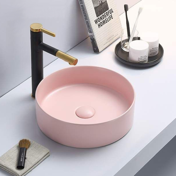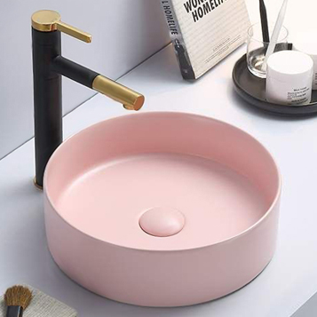 Накладная круглая раковина чаша Comforty 9111MP розовая матовая для установки на тумбу или столешницу.