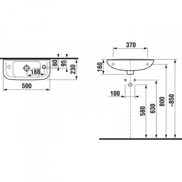 - Мини-раковина Olymp 50х23 см, с отверстием для смесителя