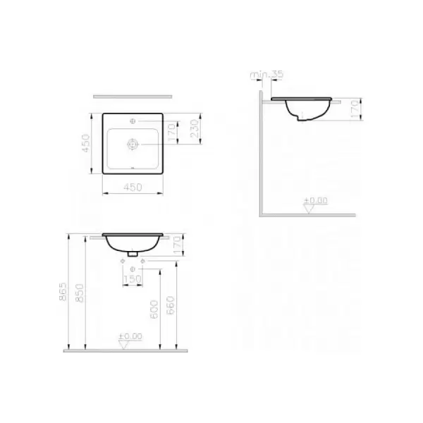 Раковина S20, накладная, 45 см, квадратная, цвет белый Vitra 5463B003-0001.