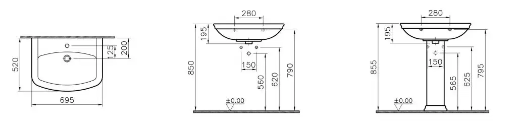 Раковину можно установить на пьедестал или полупьедестал Vitra Serenada.