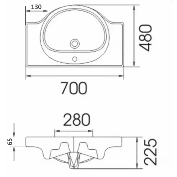 Раковина встраиваемая Erica 70 ERI70 белая 1 отв. Cersanit