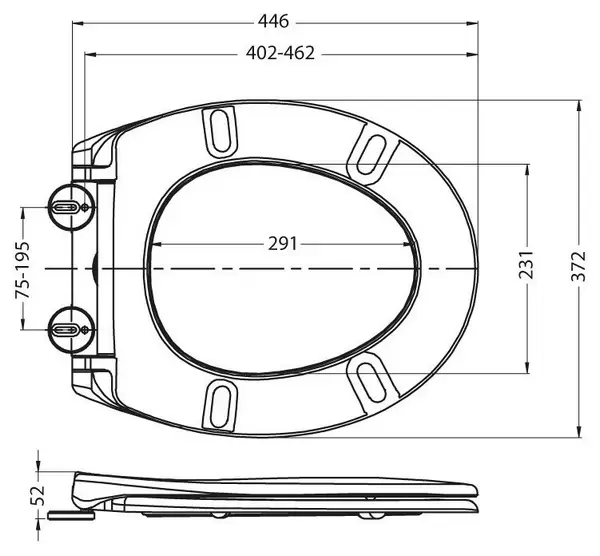 • Жесткая крышка-сиденье из дюропласта с механизмом Soft Close