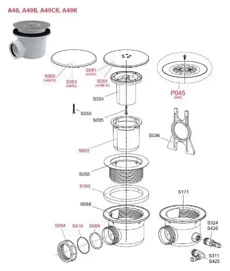 Купить Сифон для душевого поддона А-49K mat CR90 D90 артикул: 185869 в интернет-магазине ESMAG - Екатеринбург.