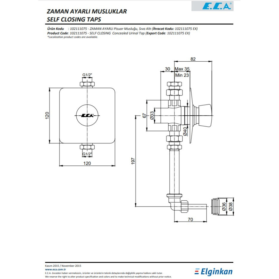 Купить Смывной механизм для писсуара скрытого монтажа арт. 102111075EX E.C.A. артикул: 203730 в интернет-магазине ESMAG - Екатеринбург.