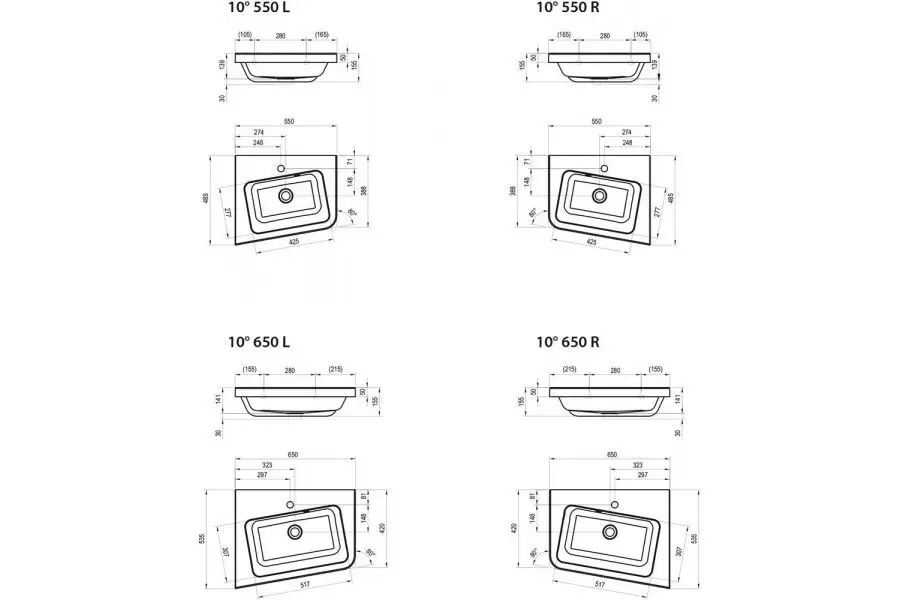 Купить Умывальник 10° 650 L белый c отверстиями XJIL1165000 артикул: 105635 в интернет-магазине ESMAG - Екатеринбург.