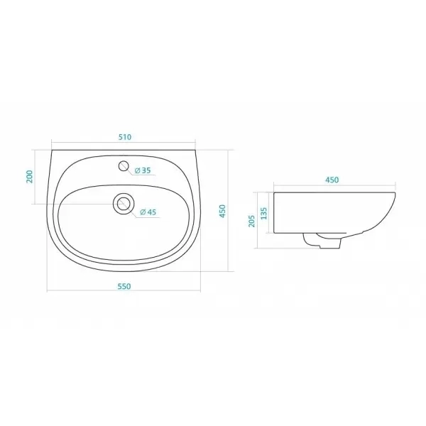 Купить Умывальник Анимо-55 1/отв. без постамента Анимо Santek артикул: 88147 в интернет-магазине ESMAG - Екатеринбург.