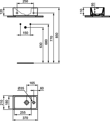 Купить Умывальник Ideal Standard TEMPO E2113V3 37х21 см черный матовый артикул: 204060 в интернет-магазине ESMAG - Екатеринбург.