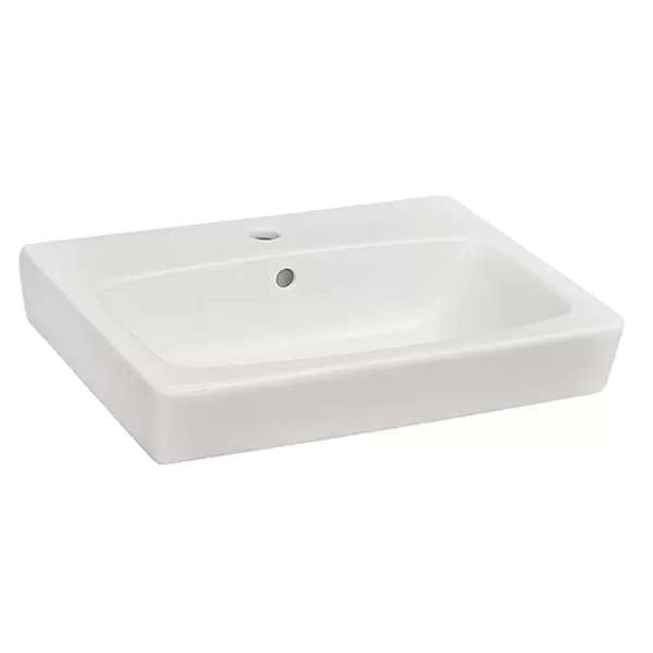 - Прямоугольный умывальник шириной 60 см с одним отверстием для смесителя