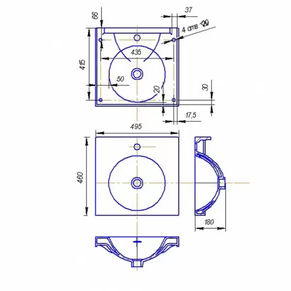Купить Умывальник Ringo 50 на кронштейнах артикул: 136394 в интернет-магазине ESMAG - Екатеринбург.