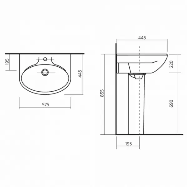 Умывальник Самарский хром кольцо, белый, ВКС с пьедесталом Самарский SANITA.
