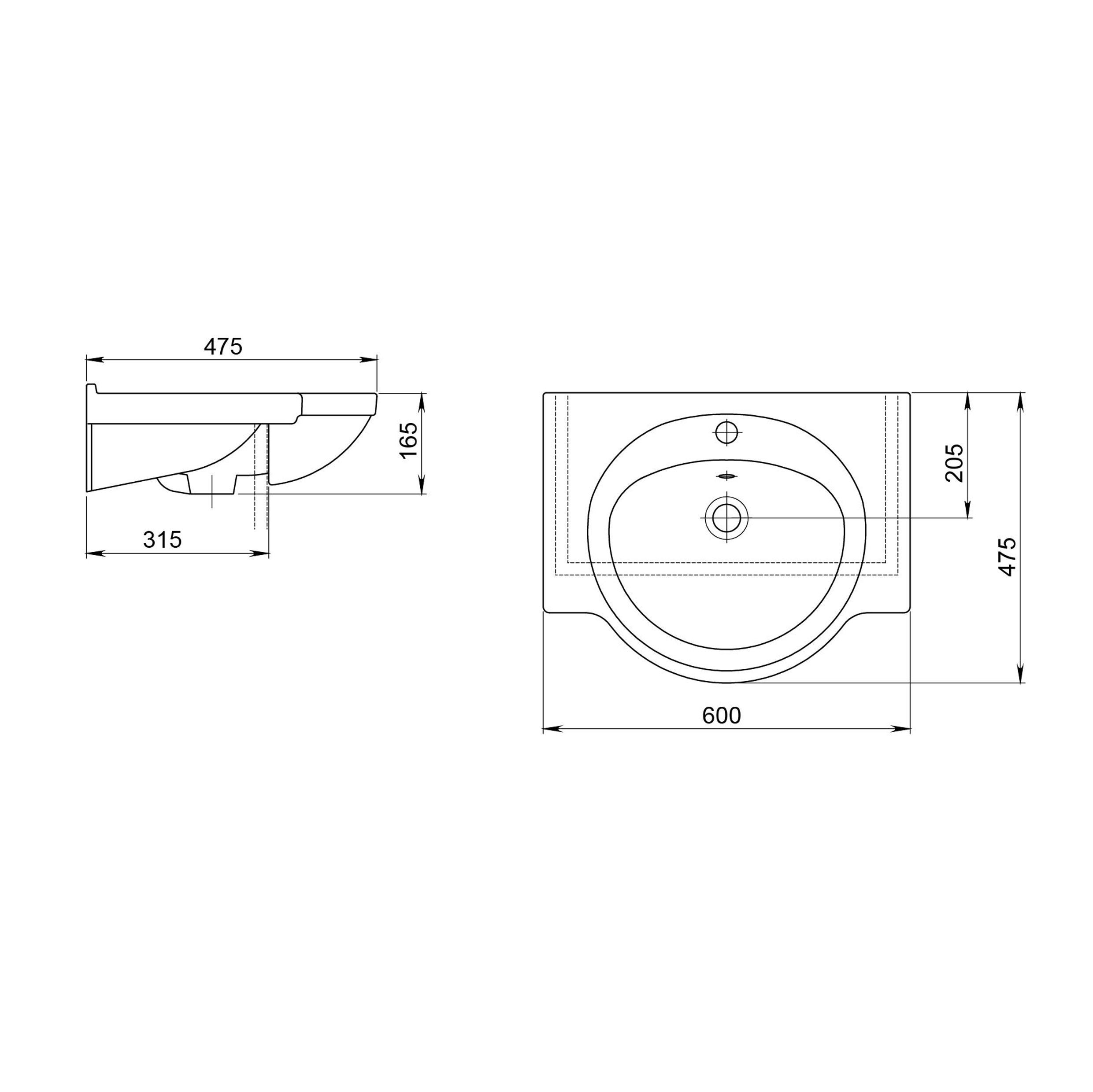 Купить Умывальник Сатурн с переливом белый, 60 см 131211S0011B0 артикул: 90009 в интернет-магазине ESMAG - Екатеринбург.