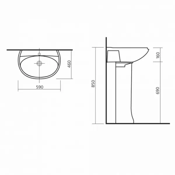 Умывальник Виктория хром.кольцо, белый, ВКС с пьедесталом Виктория SANITA.