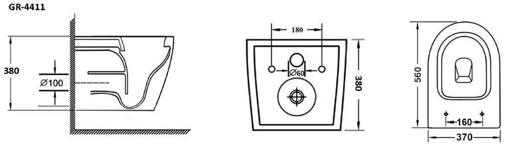 Унитаз GR-4411BS (560*360*350) ЧЕРНЫЙ подвесной БЕЗОБОДКОВЫЙ с тонкой крышкой GROSSMAN в г.Екатеринбург