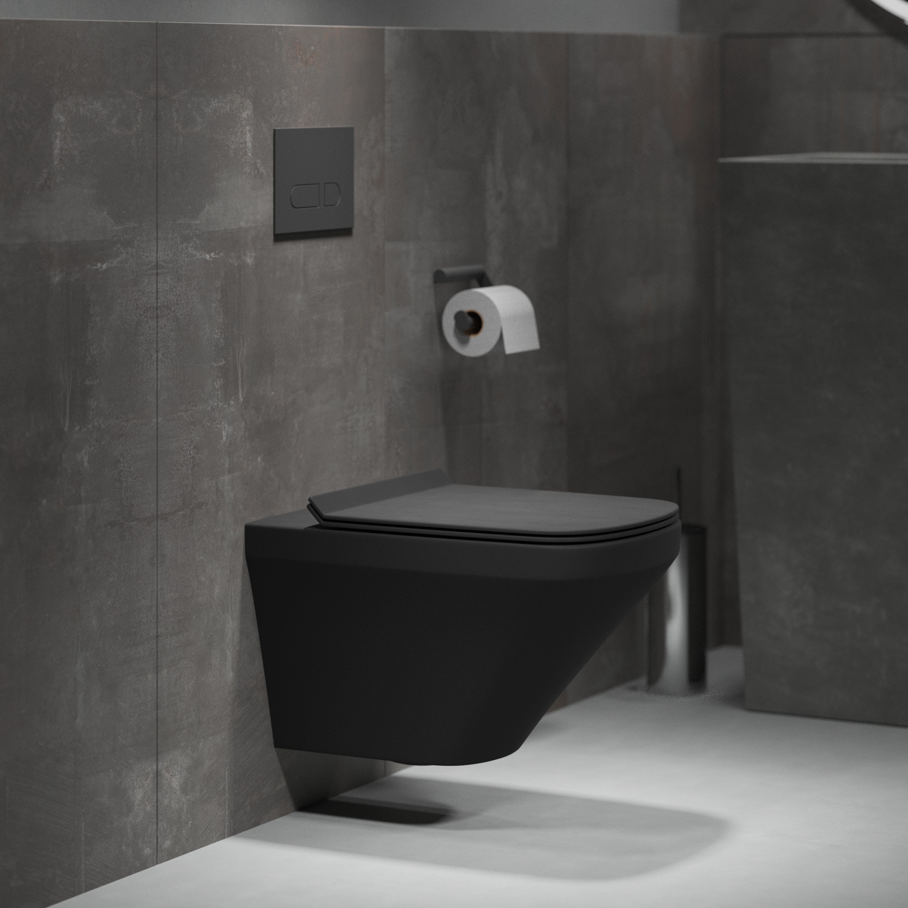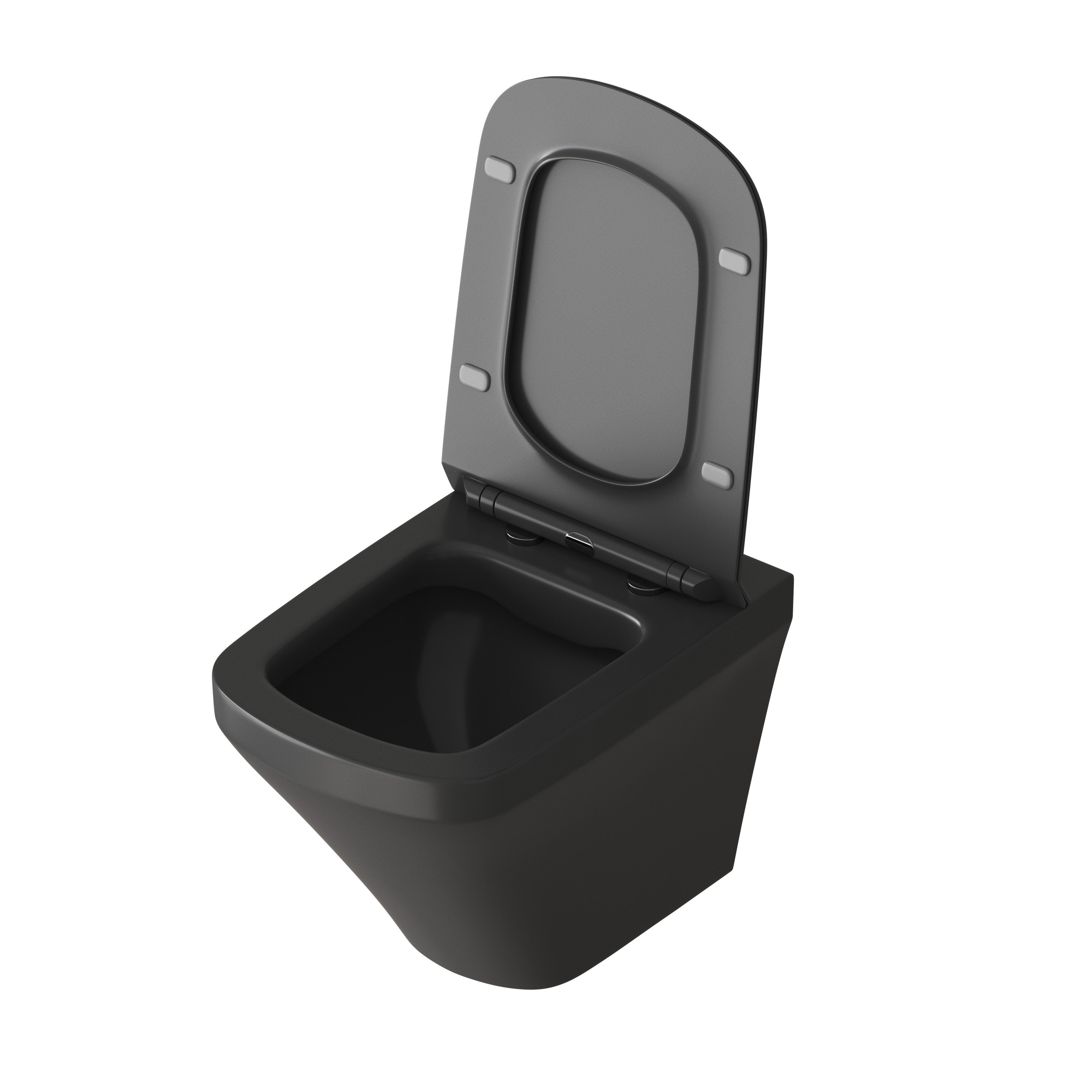 Унитаз GR-4440BMS (540*370*365) ЧЕРНЫЙ МАТОВЫЙ подвесной БЕЗОБОДКОВЫЙ с тонкой крышкой, GROSSMAN в г.Екатеринбург