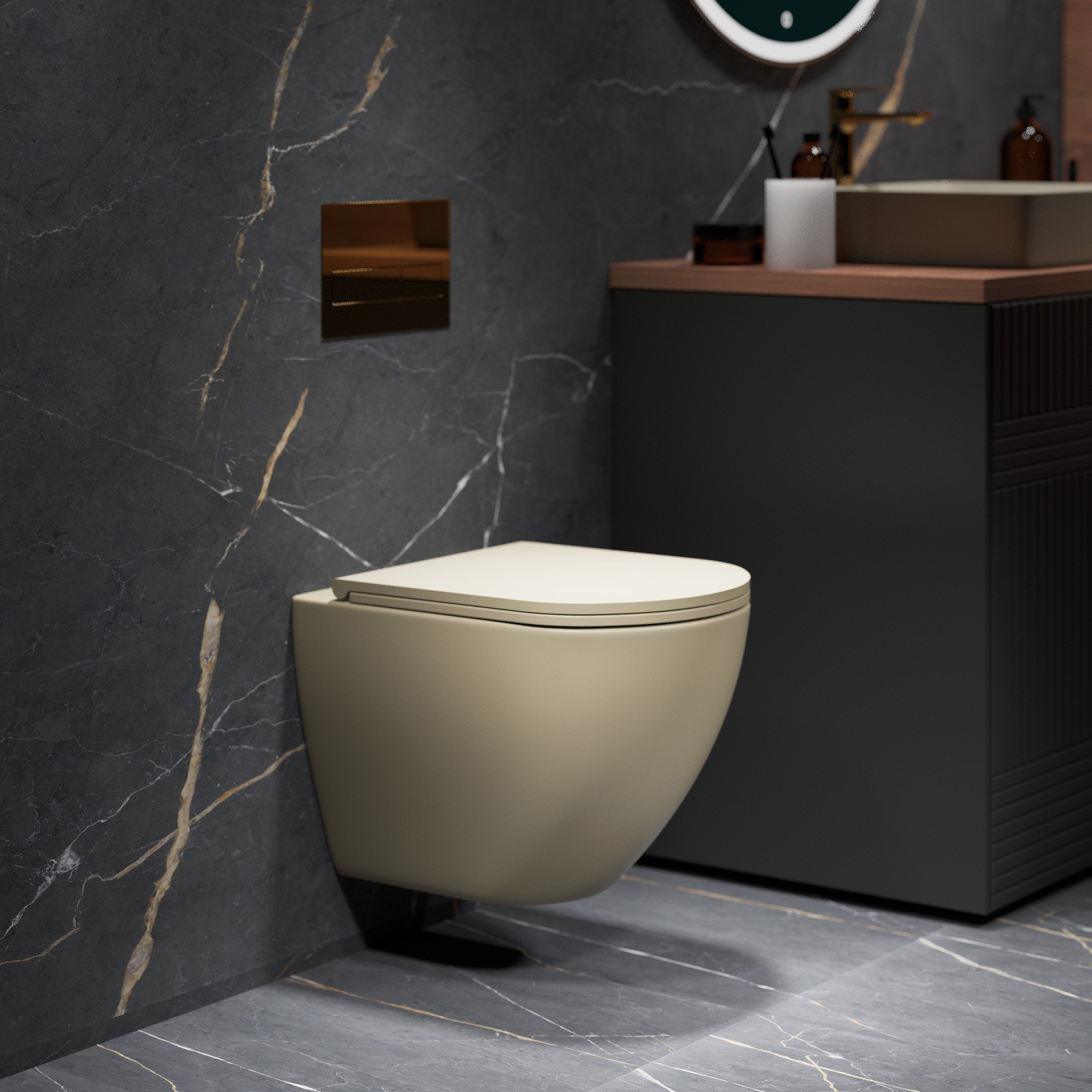 Унитаз GR-4455BEMS (485*360*375) БЕЖЕВЫЙ МАТОВЫЙ подвесной БЕЗОБОДКОВЫЙ с тонкой крышкой GROSSMAN в г.Екатеринбург