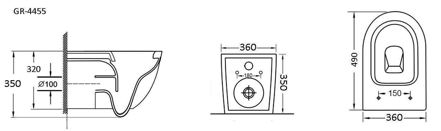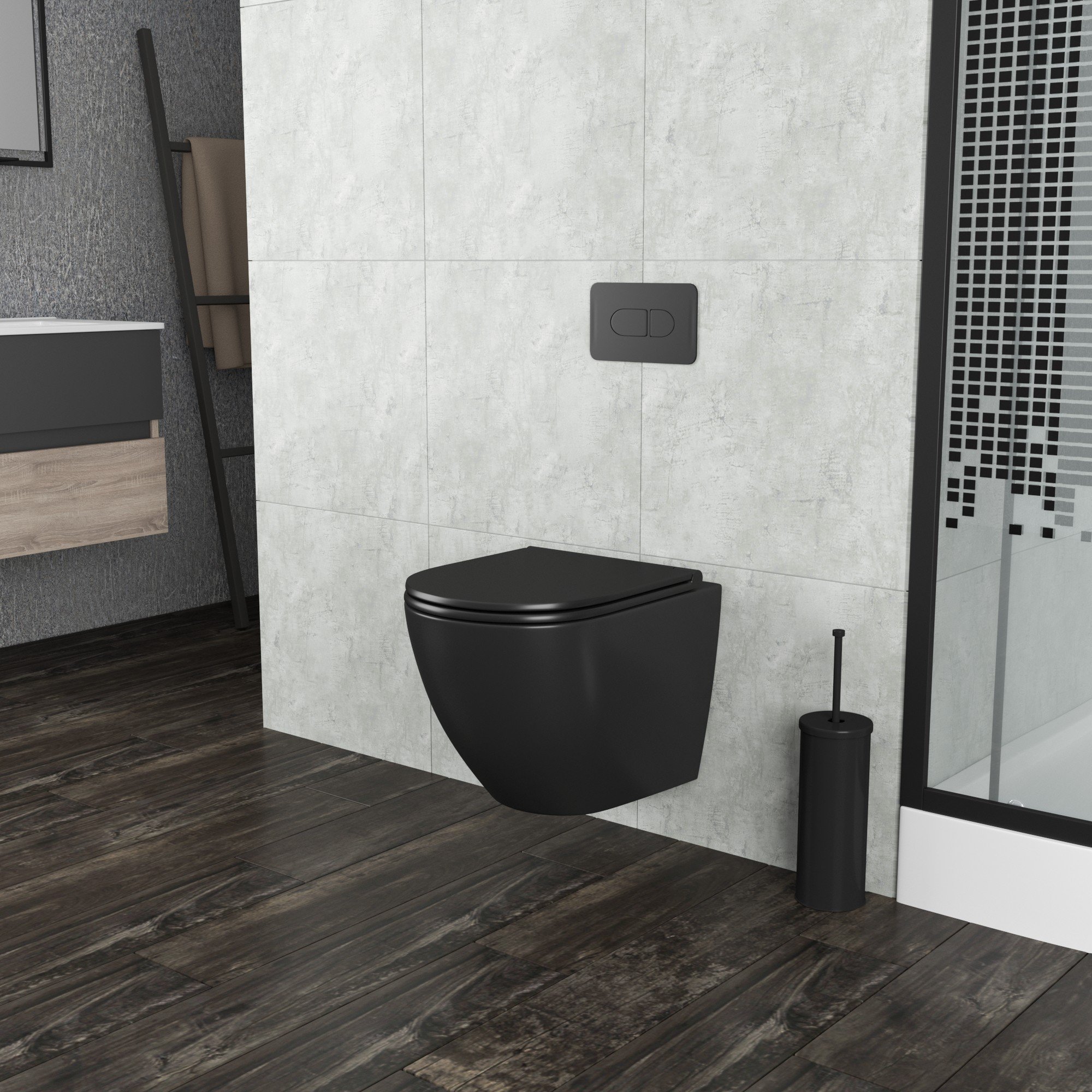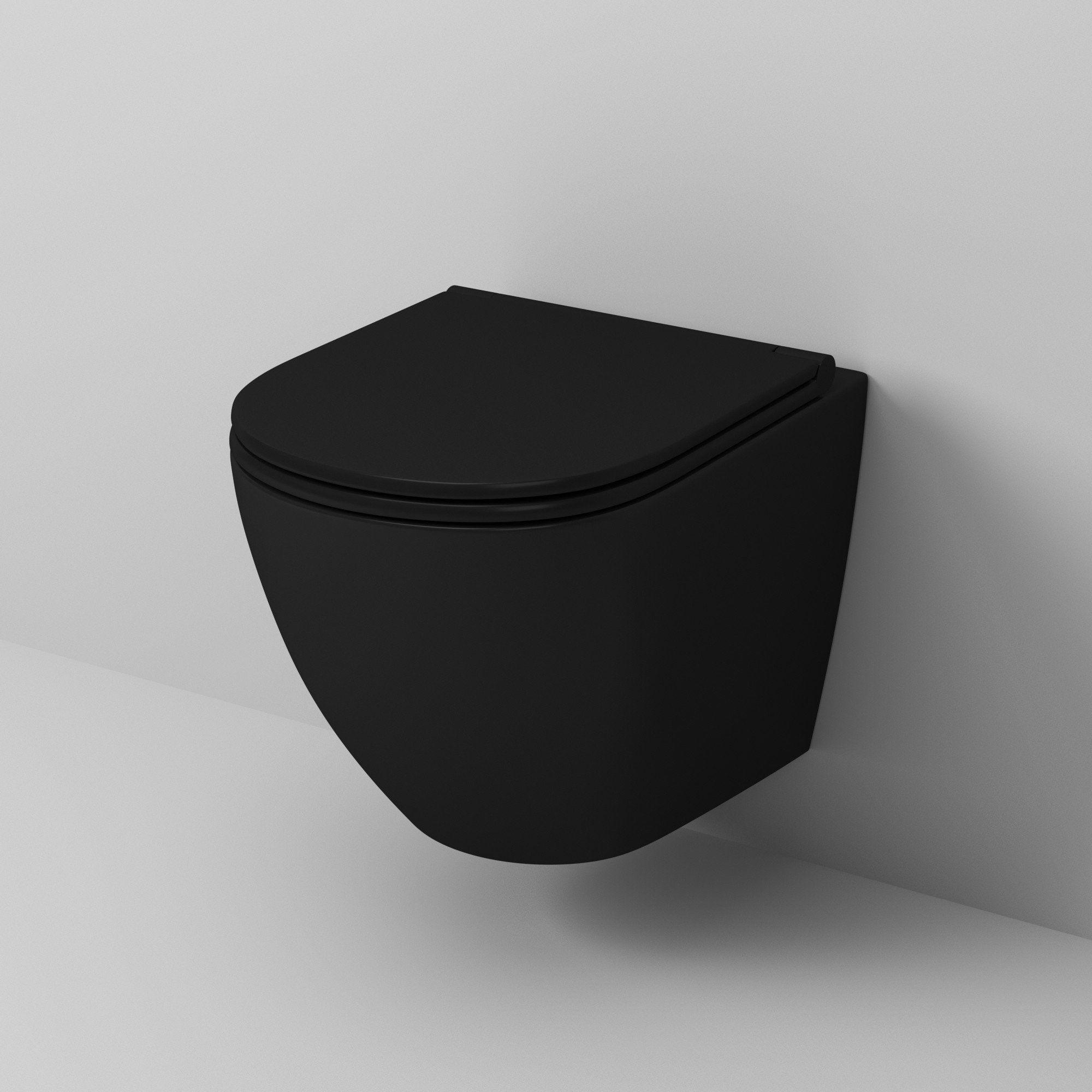 Унитаз GR-4455BMS (490*370*360) ЧЕРНЫЙ МАТОВЫЙ подвесной БЕЗОБОДКОВЫЙ с тонкой крышкой GROSSMAN в г.Екатеринбург