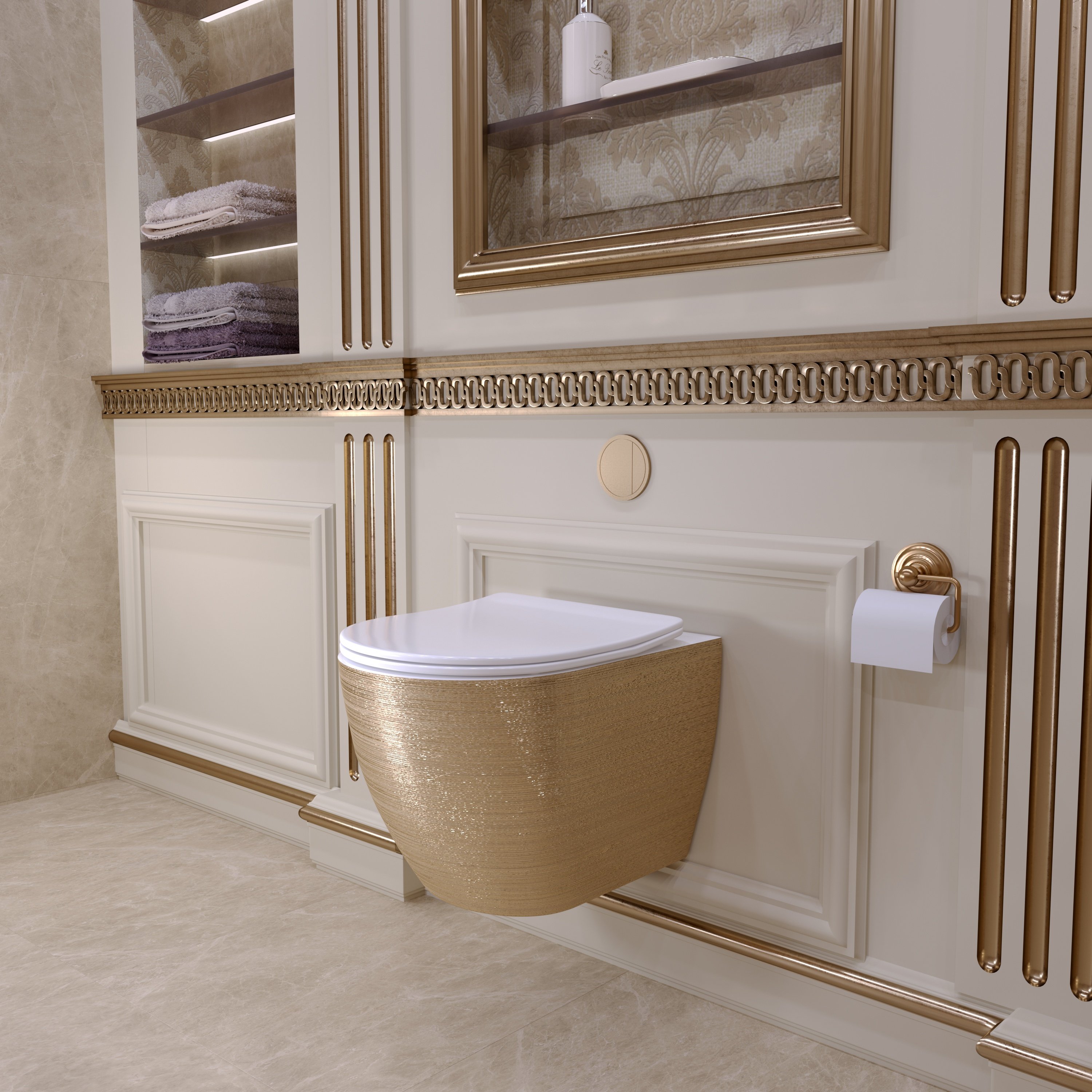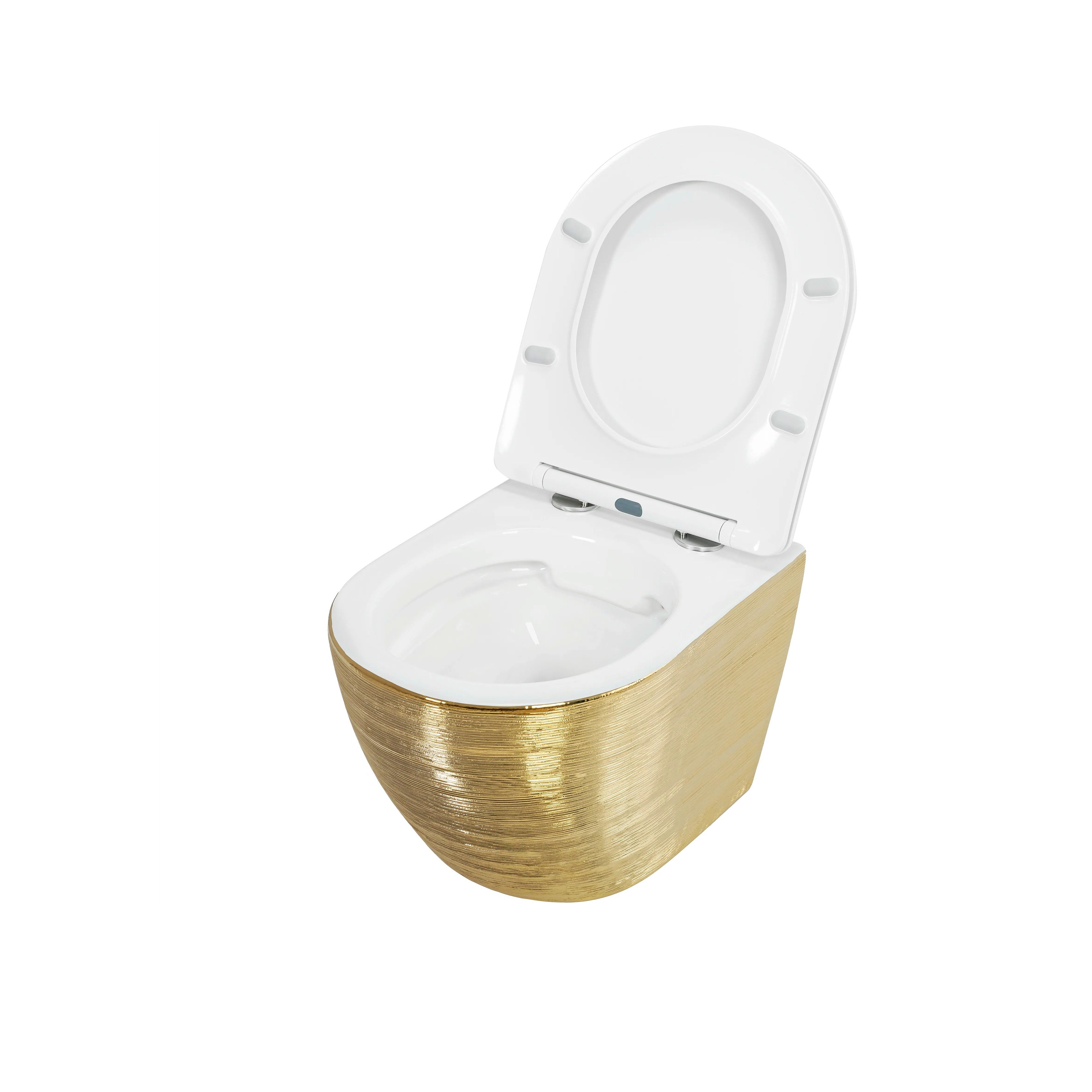 Унитаз GR-4455GWLS (480*365*370) ЗОЛОТОЙ внутри БЕЛЫЙ подвесной БЕЗОБОДКОВЫЙ с тонкой крыш GROSSMAN в г.Екатеринбург