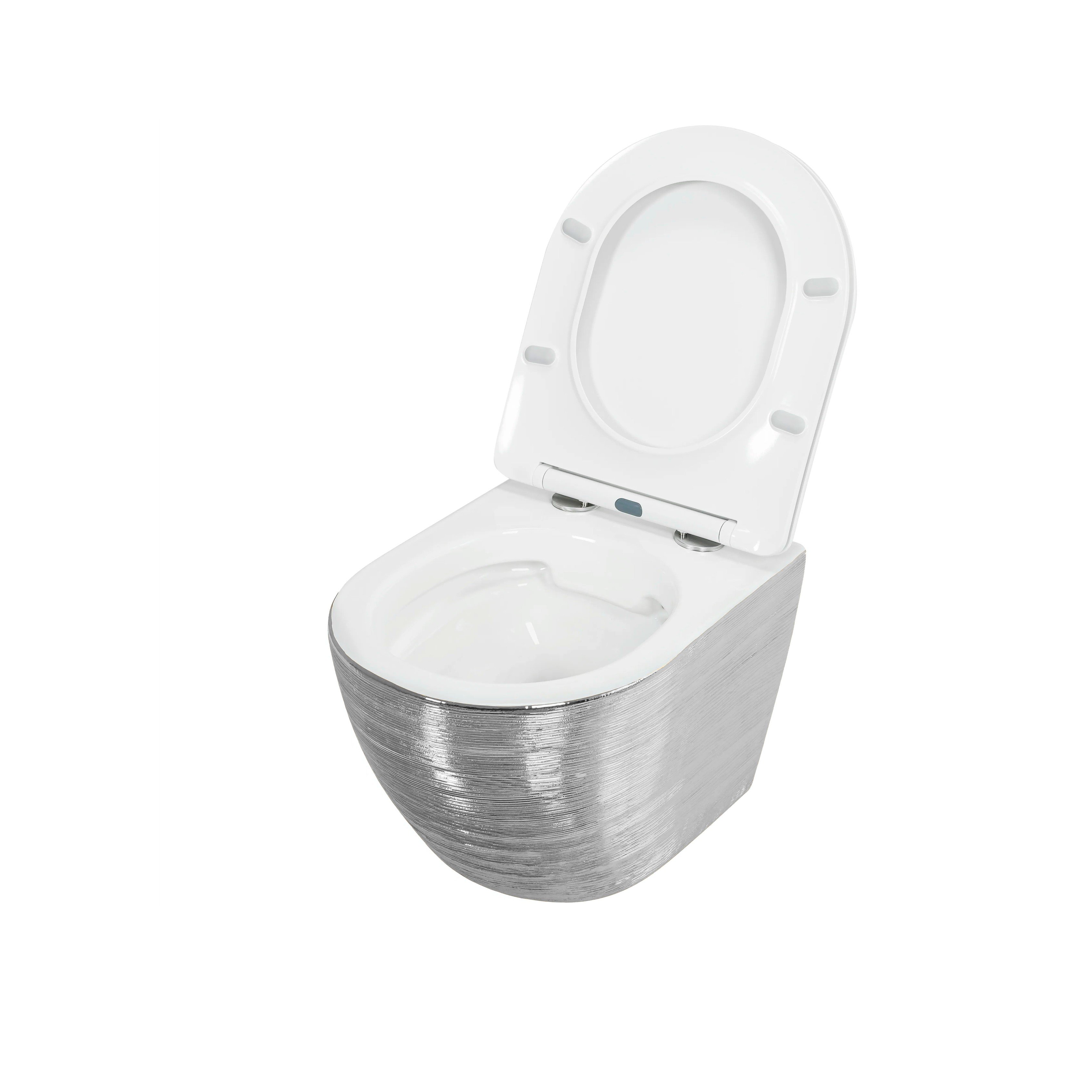 Унитаз GR-4455SWLS (480*365*370) СЕРЕБРО внутри БЕЛЫЙ подвесной БЕЗОБОДКОВЫЙ с тонкой крыш GROSSMAN в г.Екатеринбург