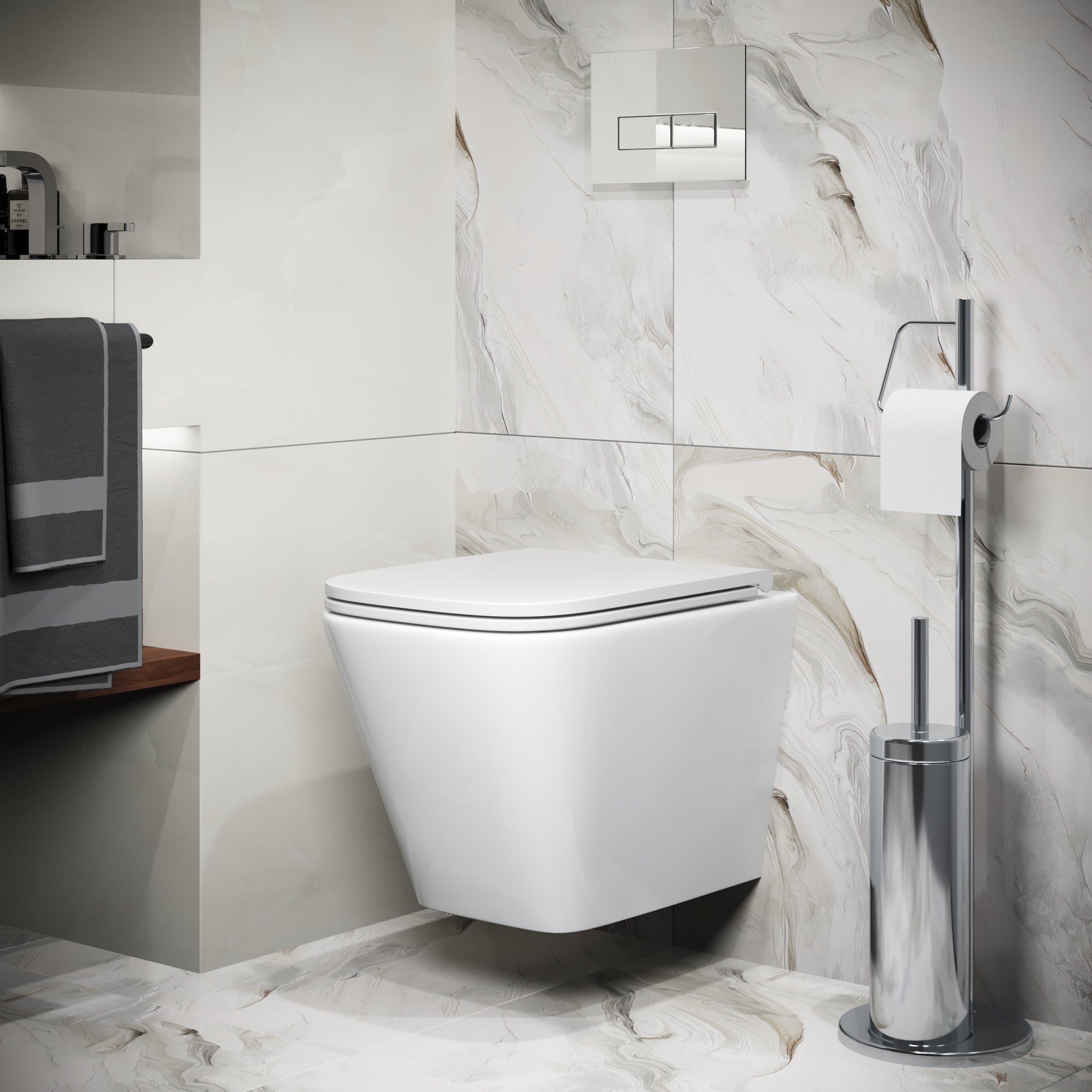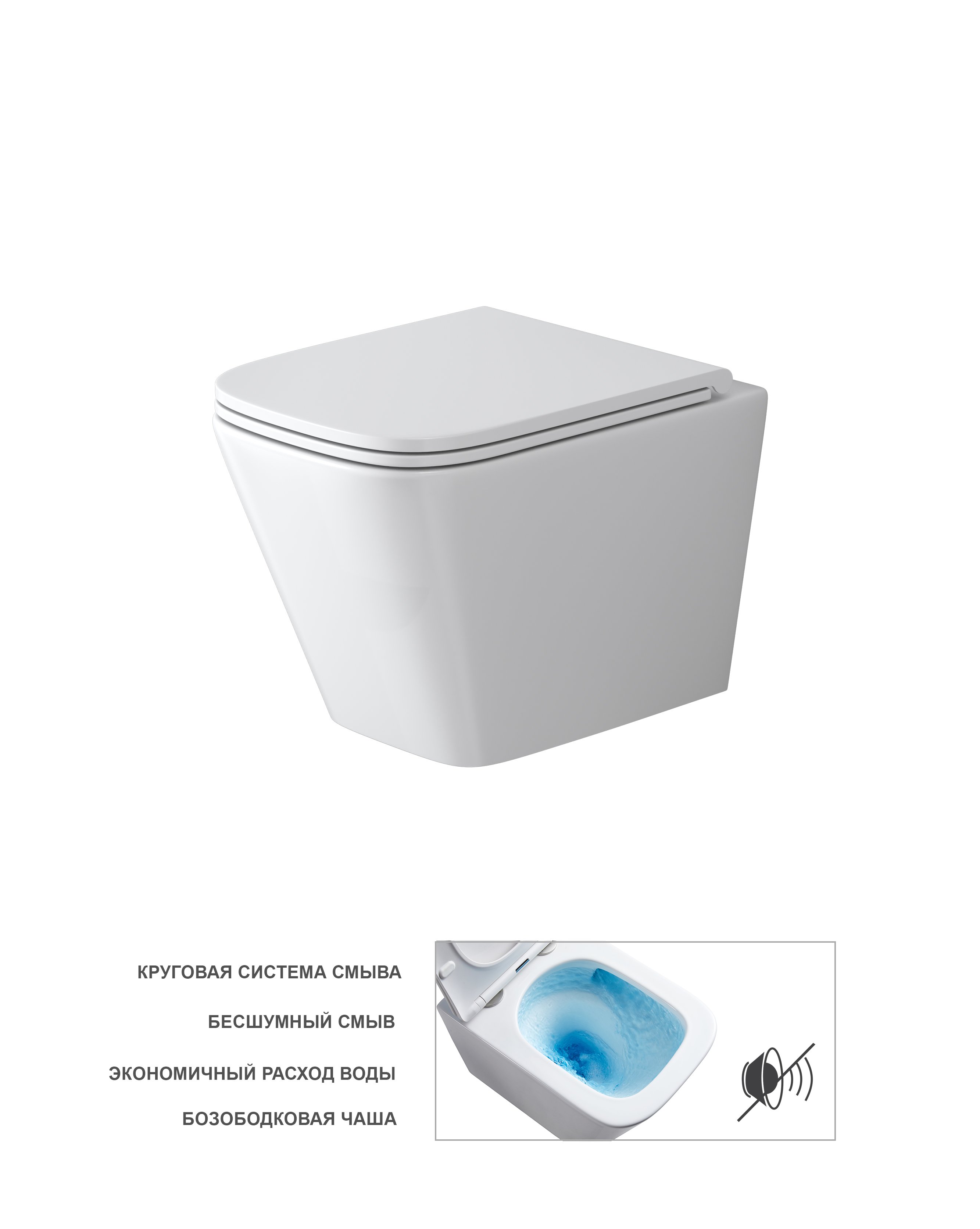 Купить Унитаз GR-4479SQ (490*345*355) подвесной БЕЗОБОДКОВЫЙ с тонкой крышкой, GROSSMAN артикул: 214430 в интернет-магазине ESMAG - Екатеринбург.