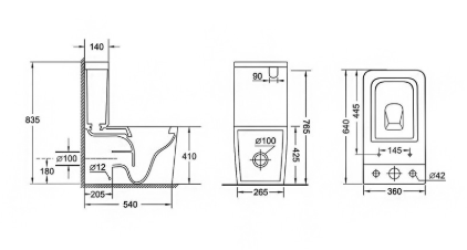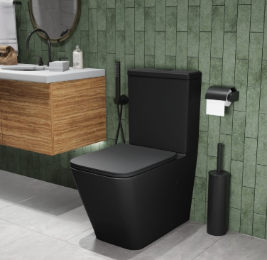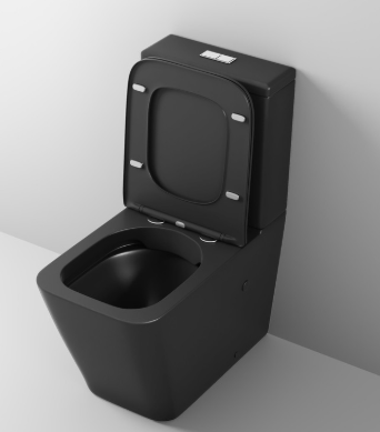 Унитаз оснащен механической кнопкой слива и технологией воронки-водоворота для эффективного смыва. Компактные размеры (36×64×83 см) позволяют установить его даже в небольших помещениях. Черное сиденье и крышка гармонично дополняют дизайн, делая модель универсальной для разных интерьеров.