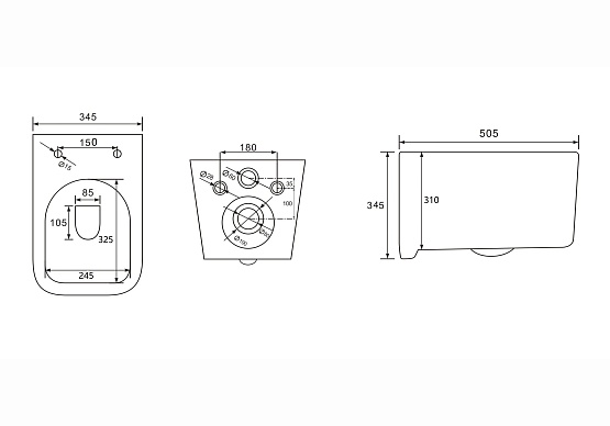 • Легкость установки: Унитаз легко монтируется на инсталляцию для подвесных унитазов, что позволяет сэкономить место и облегчить уборку пола. В комплект входят все необходимые элементы для установки.