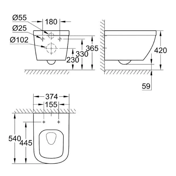 Унитаз подвесной EURO безободковый 54х37 (белый) 39328000 GROHE.