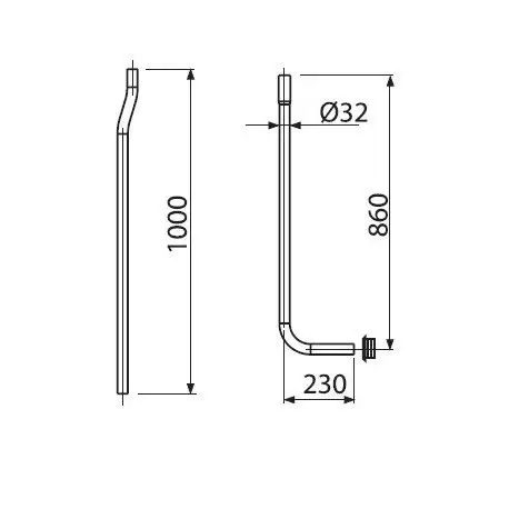 Водосливная труба состоит из двух частей, диаметром 32 мм.