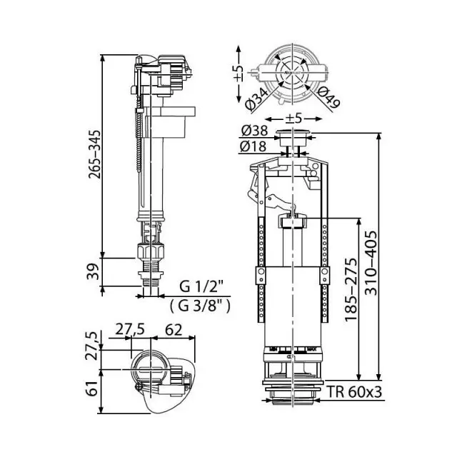Конструкция позволяет регулировать высоту механизма в зависимости от высоты бачка