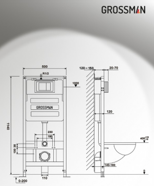 Купить Унитаз с инсталляцией 97.4477BMSQ.05.21M GR-4477BMSQ Grossman артикул: 226356 в интернет-магазине ESMAG - Екатеринбург.