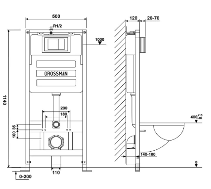Купить Унитаз с инсталляцией 97.4477BMSQ.05.42M GR-4477BMSQ Grossman артикул: 226344 в интернет-магазине ESMAG - Екатеринбург.