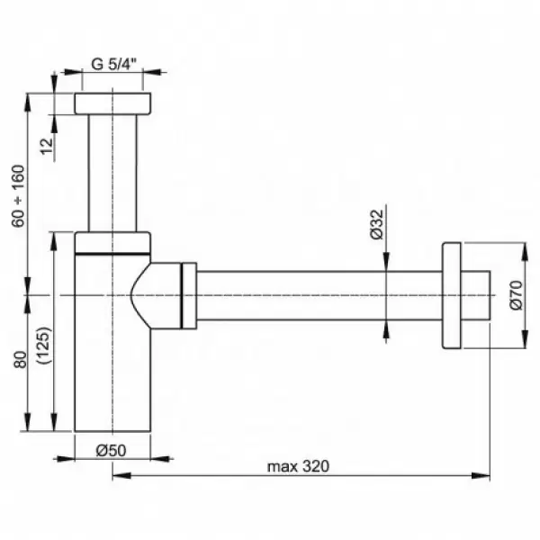 Дизайн сифон для умывальника, d 32мм, цельнометаллический, круглый A400 BLISTR ALCAPLAST.