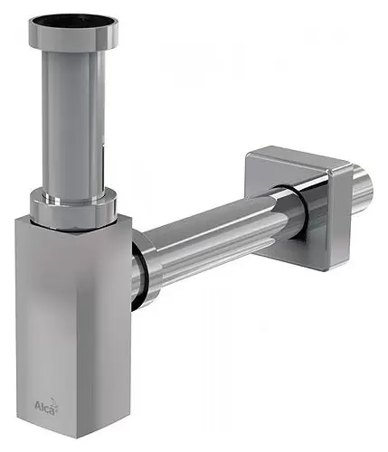 Цельнометаллический бутылочный сифон ALCAPLAST A-401 с гайкой для подключения слива умывальника, водослив 5/4''.