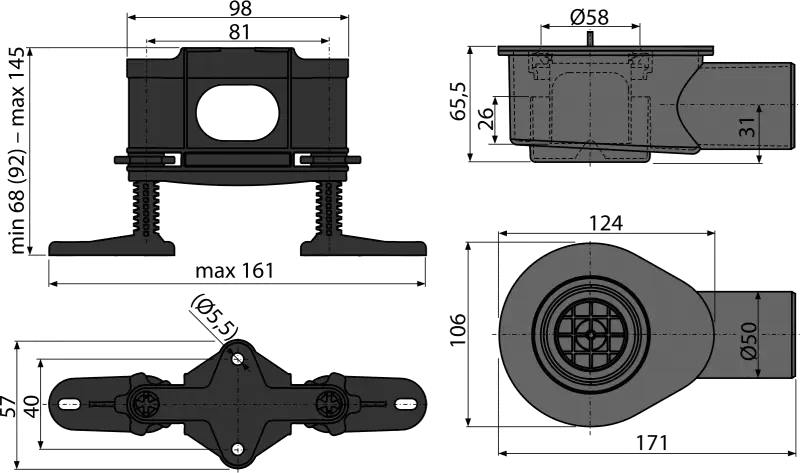 Высота монтажа от 81 мм