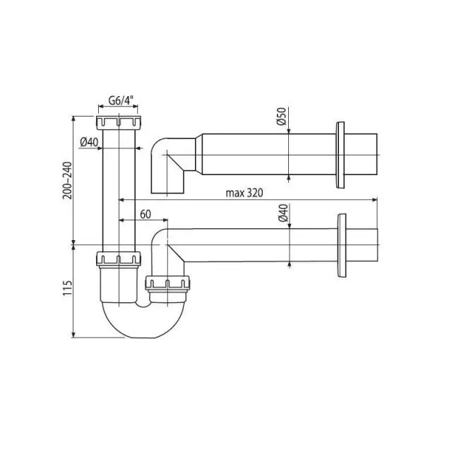 Сифон трубчатый с накидной гайкой 6/4 A80-DN50 ALCAPLAST