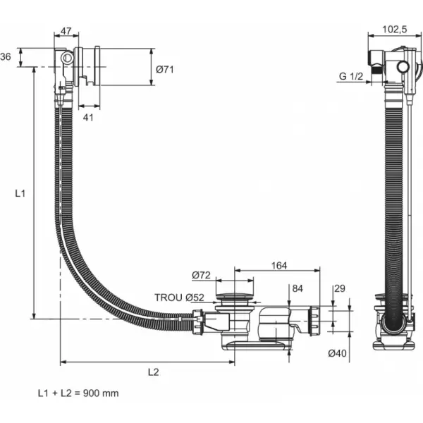 Ультратонкий слив-перелив CAPSULE с функцией наполнения ванны E6D134-CP Jacob Delafon.