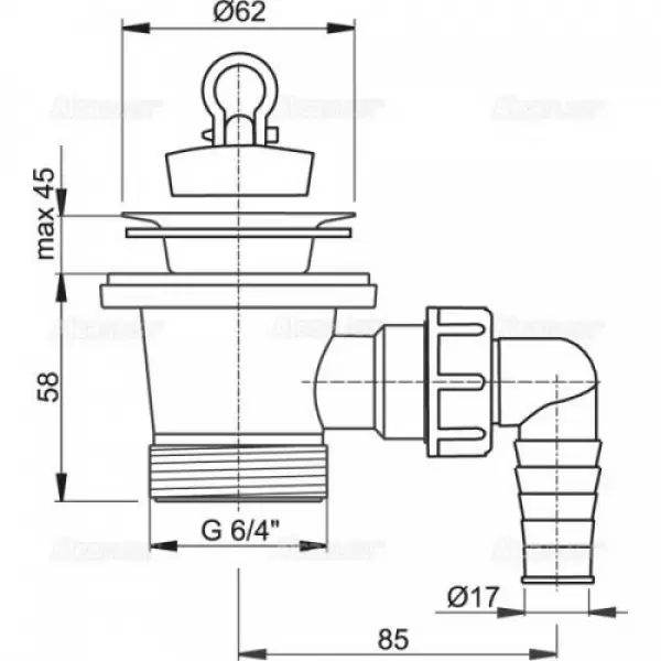 Водослив для умывальника 5/4", цельнометаллический A439 ALCAPLAST.