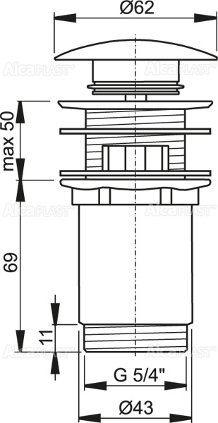 Водослив для умывальника clik/clack 5/4, цельнометаллический с переливом и большой белой заглушкой A392B ALCAPLAST в г.Екатеринбург