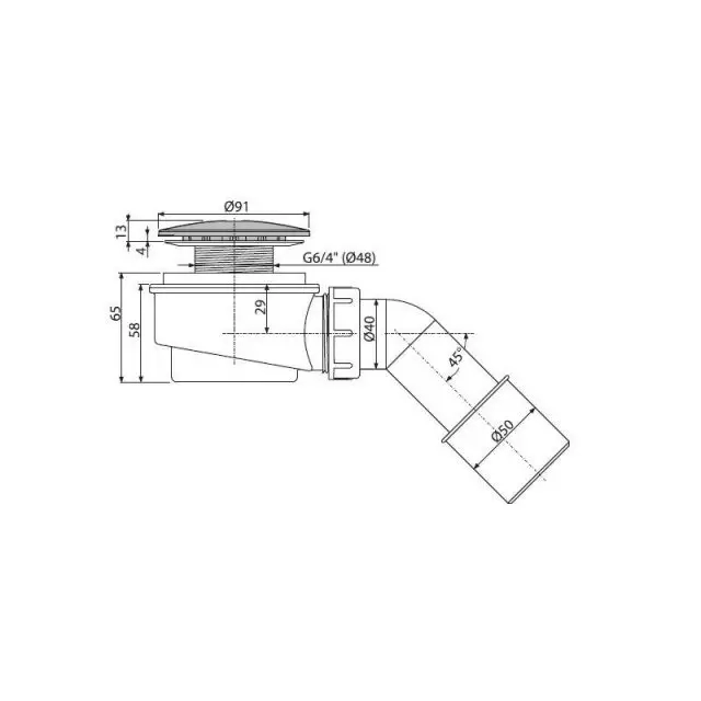 - Для душевых поддонов со сливным отверстием Ø60 мм