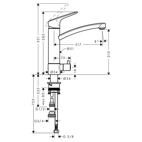 Кухонный смеситель, однорычажный, с запорным вентилем Logis 71834000 HANSGROHE