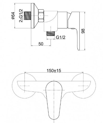 Смеситель для душа, однорычажный, без душевого гарнитура