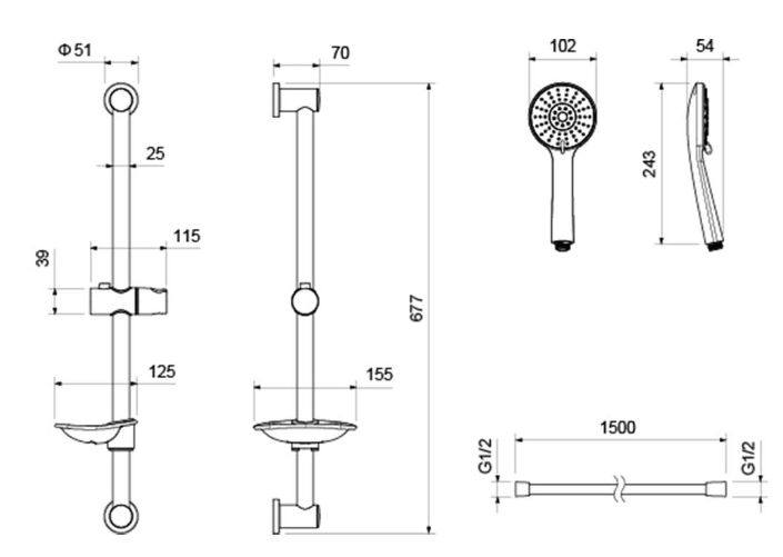 Размер/диаметр ручной лейки: 24,3х5,4хØ10,2 см