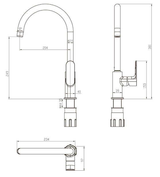 • Поворотный излив из латуни